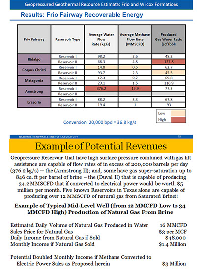 "Geopressured Geothermal Resource and Recoverable Energy Estimate for the Frio and Wilcox Formations, Texas", dated October 21, 2011, by Ariel Esposito and Chad Augustine.